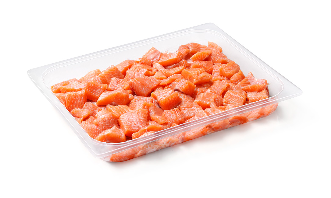 BOCCONCINI DI FILETTO DI TROTA SALMONATA SPELLATO E SPINATO IN VASCONE TRASPARENTE ATM
